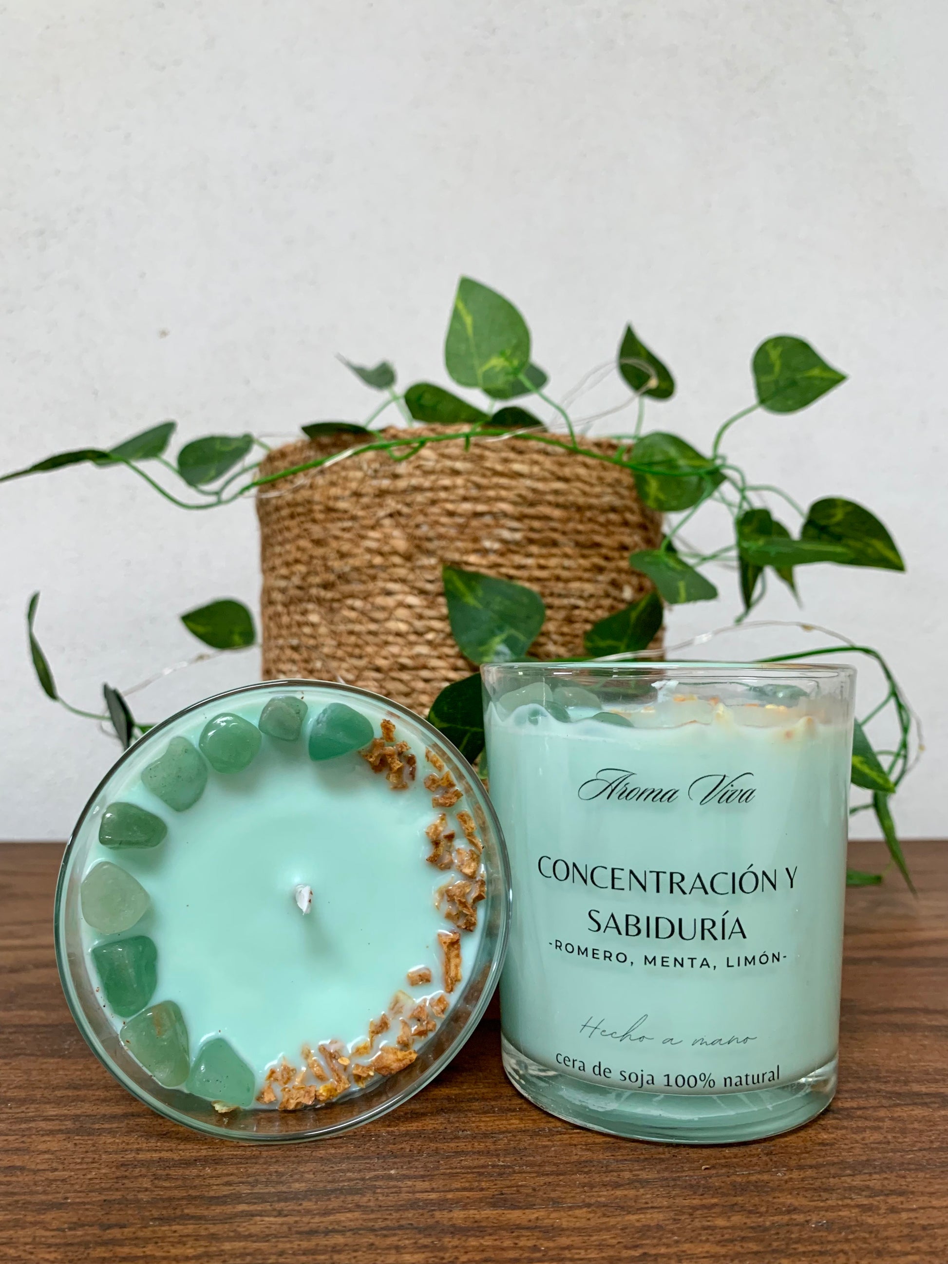 Activa tu mente y enfoca tus pensamientos con esta vela de soja aromática de romero, menta y limón. Su tono verde esmeralda y las piedras de esmeralda aportan claridad y equilibrio, ideales para estudiar, trabajar o meditar con propósito.
