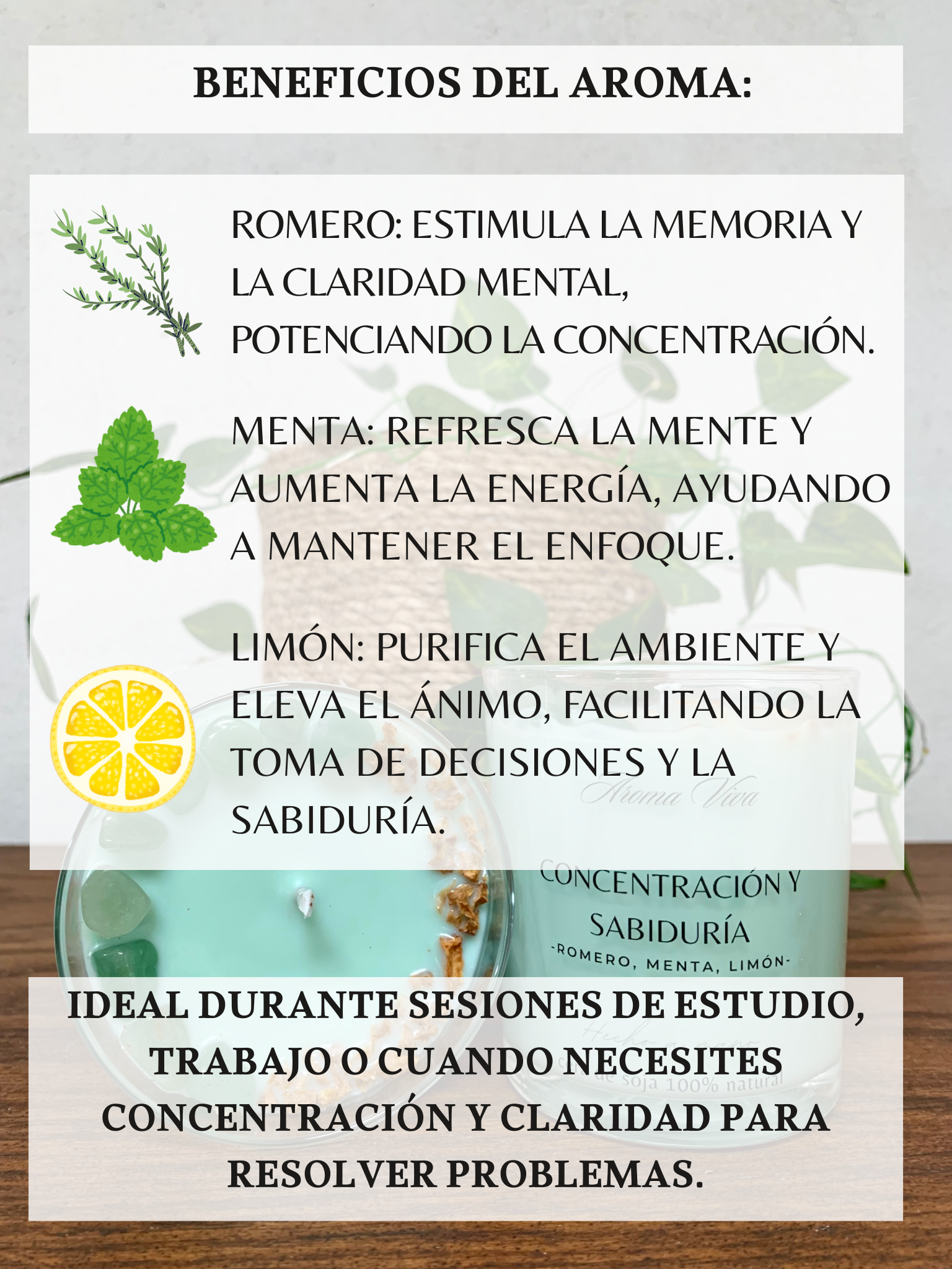 Está yo tengo mi Top en mi Top es una vela que todo el mundo debería tener porque porque al tener menta romero y limón así que te concentres para los estudios para un proyecto para hasta para una receta que estés en la cocina pero también cuando estás resfriado, te ayuda a respirar mejor por la menta, así que yo he tenido la suerte de tener varios tamaños y ahora mismo me queda la de 100 Porque también viene decorada con piedras monísimas pero la tengo de 100 he gastado ya dos grandes espectacular simplemente espectacular